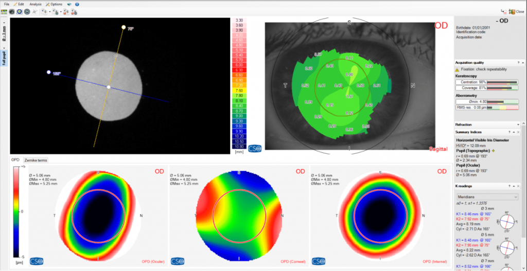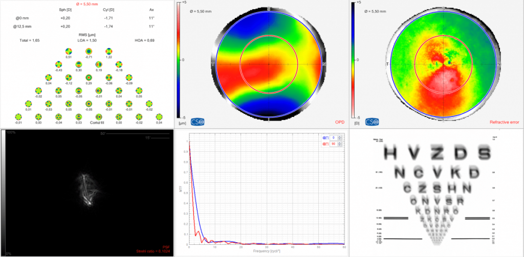 The tool integrates with the Phoenix software, offering a wide range of analysis options, such as refractive error maps and visual simulations (PSF, MTF and convolution with optotype), which helps the clinician to understand and explain the patient’s visual problems.