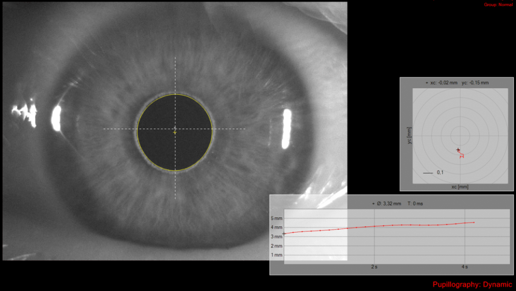 Completely integrated with the topography of the ante- rior surface of the cornea, it performs the pupil measu- rement in scotopic (0.04 lux), mesopic (4 lux), photopic (50 lux) conditions and in dynamic mode. Knowing the center and the diameter of the pupil, is essential for many clinical procedures which seek to optimize vision quality.