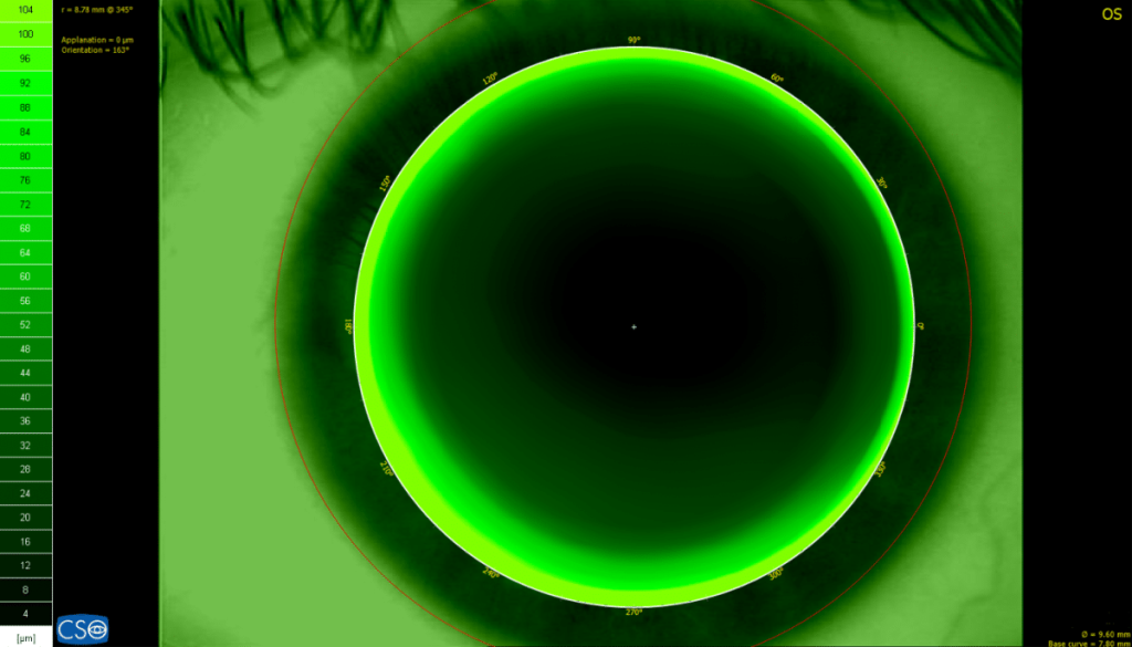 A contact lens fitting module is available, which simulates the fit of rigid contact lenses based on an internal database of many lens manufacturers.